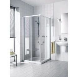 <p>Kermi IBIZA 2000 I2ED2 Eckeinstieg 2-teilig (Gleittüren) – Halbteil, Höhe 1750 mm, Wanneneinbaumaß 780-802 mm, Breitenverstellmaß 770-792 mm, Farbe Weiß, Glas ESG Klar</p>