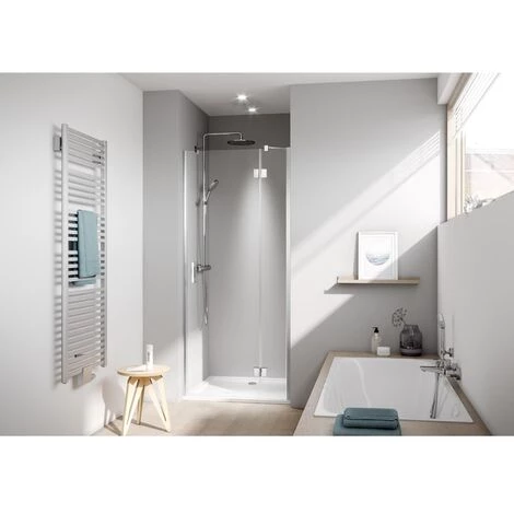 Kermi LIGA porte battante SFR 750 x 2000mm argent ultra brillant verre trempé transparent Clean