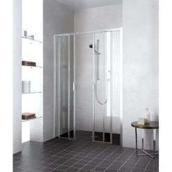 <p>Kermi LIGA Gleittür 4-teilig bodenfrei mit Festfeldern Zum Einbau in einer Nische und zur Kombination mit LI TWD Seitenwand. Teilgerahmte Tür mit zwei Gleittürsegmenten, je nach einer Seite öffnend, mit zwei Festfeldern. Verglasung mit 4 mm Einscheiben-Sicherheitsglas nach EN 12150, optional mit Pflegeleicht-Beschichtung KermiCLEAN. Profile aus hochwertigem eloxiertem Aluminium, Griffe aus hochwertigem Metall. Bei Oberfläche Silber Mattglanz und KermiEXTRA, Griffe, Aushängemechanismus und Anschlüsse für Bodenschwelle in edlem Chrom. Verstellmöglichkeit je Wandprofil 25 mm. Gleittürsegmente zur Reinigung nach innen schwenkbar. Hochwertige kugelgelagerte Laufrollen. Durchgehende Magnetleisten und Dichtprofile, waagerechte Dichtleiste mit Wasserabpralleffekt. Mit Bodenschwelle (Höhe 6 mm), oder ohne Bodenschwelle (bodenfrei) installierbar. LIGA erfüllt die Anforderungen der Spritzwasserprüfung nach DIN EN 14428. Im Lieferumfang enthalten: Befestigungsmaterial. Made in Germany. Geprüft nach DIN EN 14428 (CE) und PPP 53005 (TÜV / GS). 20 Jahre Ersatzteil-Nachkaufsicherheit nach Auslauf des Modells. Qualitätssicherungssystem zertifiziert nach DIN EN ISO 9001:2015. Umweltmanagement zertifiziert nach DIN EN 14001:2015. Energiemanagement zertifiziert nach DIN EN 50001:2011.</p>